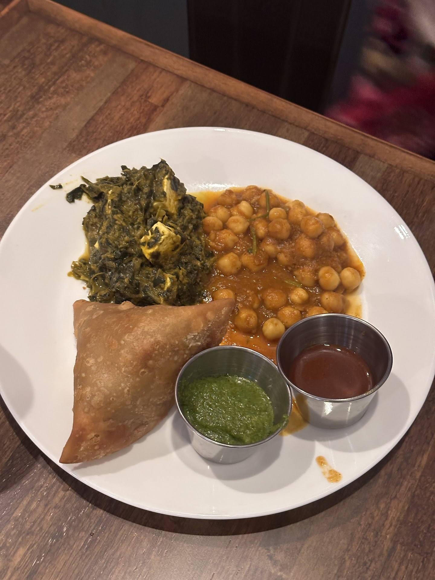Every dish we chose was a homerun. The Lamb Korma was the best thing we ordered - it was so buttery and delicious. This will be my order when my need for spice is not on overload. The Lamb Rogan Josh was perfectly spiced - cardamom and cinnamon...I didn't dot the ordering but I identified the flavors immediately when I tried the dish...and I'm not usually any good at doing that. It was obvious to me that their recipe is not overloaded with flavors. It was just right. The vegan dish we chose was the Chana Saag - the chickpeas and spinach made a great combo. It had a subtle spice that built as you continued eating which did it for me with this dish - really delicious, and vegan! I don't usually go for the thick, rich, honey covered desserts, but I had a bite of the Gulab Jamun and it was a great cap off to a wonderful, satisfying and SPICY meal!