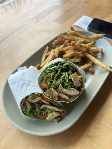 After maybe 15-20 minutes the food came out. Everything was served on real plates and with real silverware. Ketchup and salt and pepper were available for self service near the counter. The food was pretty good and fresh. The lamb sandwich came on toasted bread and had plenty of meat. The lamb flavor was prominent. However, the sandwich was slightly on the dry side; any sauce that may (or may not) have been put on was definitely not enough to be apparent. The chicken wrap was also good, with many vegetables including peppers inside, but the meat itself was slightly dry. I did need to add salt to both sandwiches, and I normally never do at any restaurant, so take that with a grain of salt (pun intended). The fries on the side were fresh and crispy. Overall, good food. But honestly, for the price, it wasn't mind blowing.