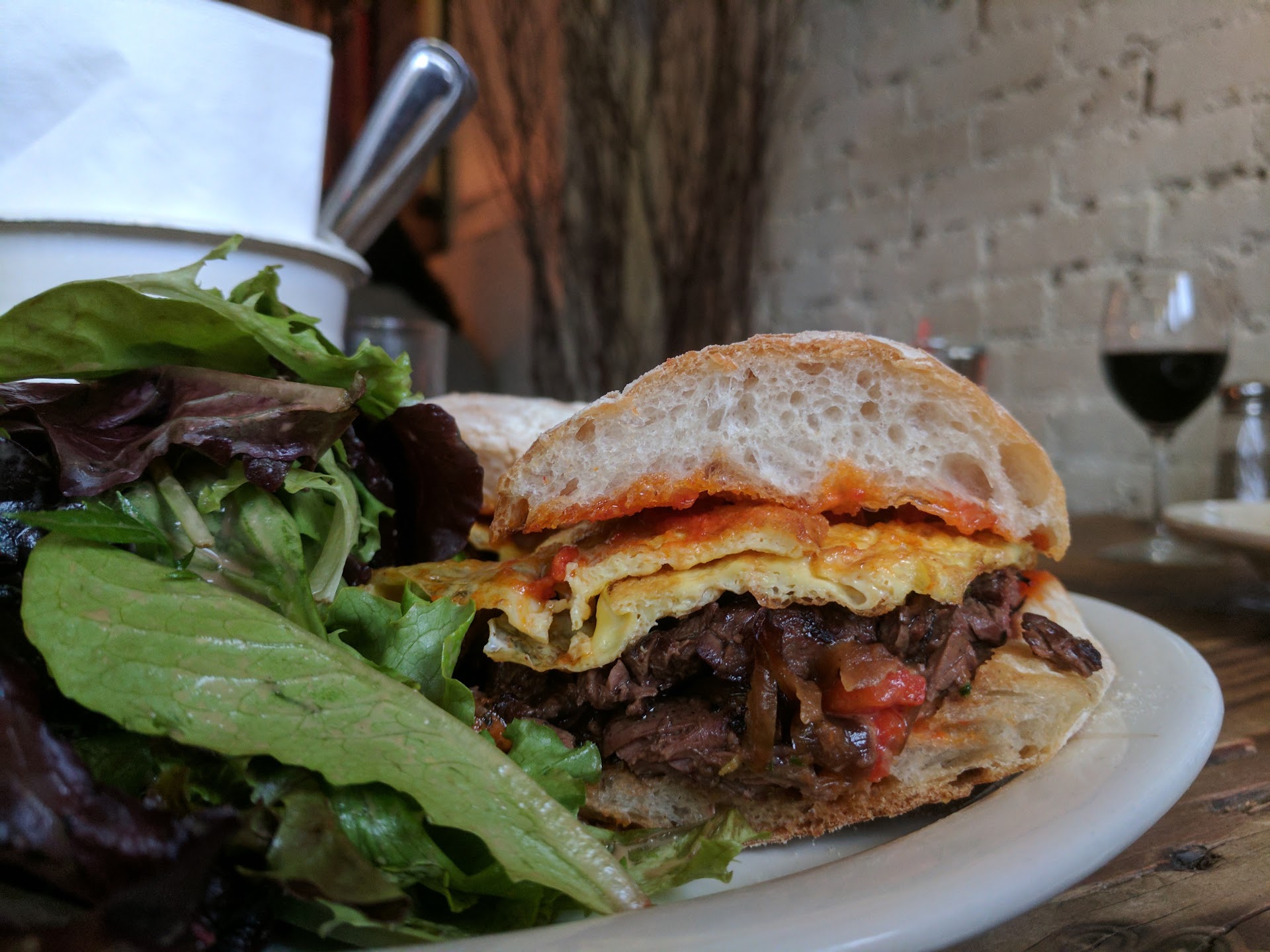 And the food... Well, when the New Orleans native tells you the grits are some of the best he's ever had, you listen (and steal a bite, because Damn). The croque madame and home fries got inhaled no less quickly, and my steak sandwich with its fried peppers and onions was to die for. I took a little longer to finish, but only because my salad (dressed to perfection, with bright fresh greens and a bit of shredded cabbage) was massive.