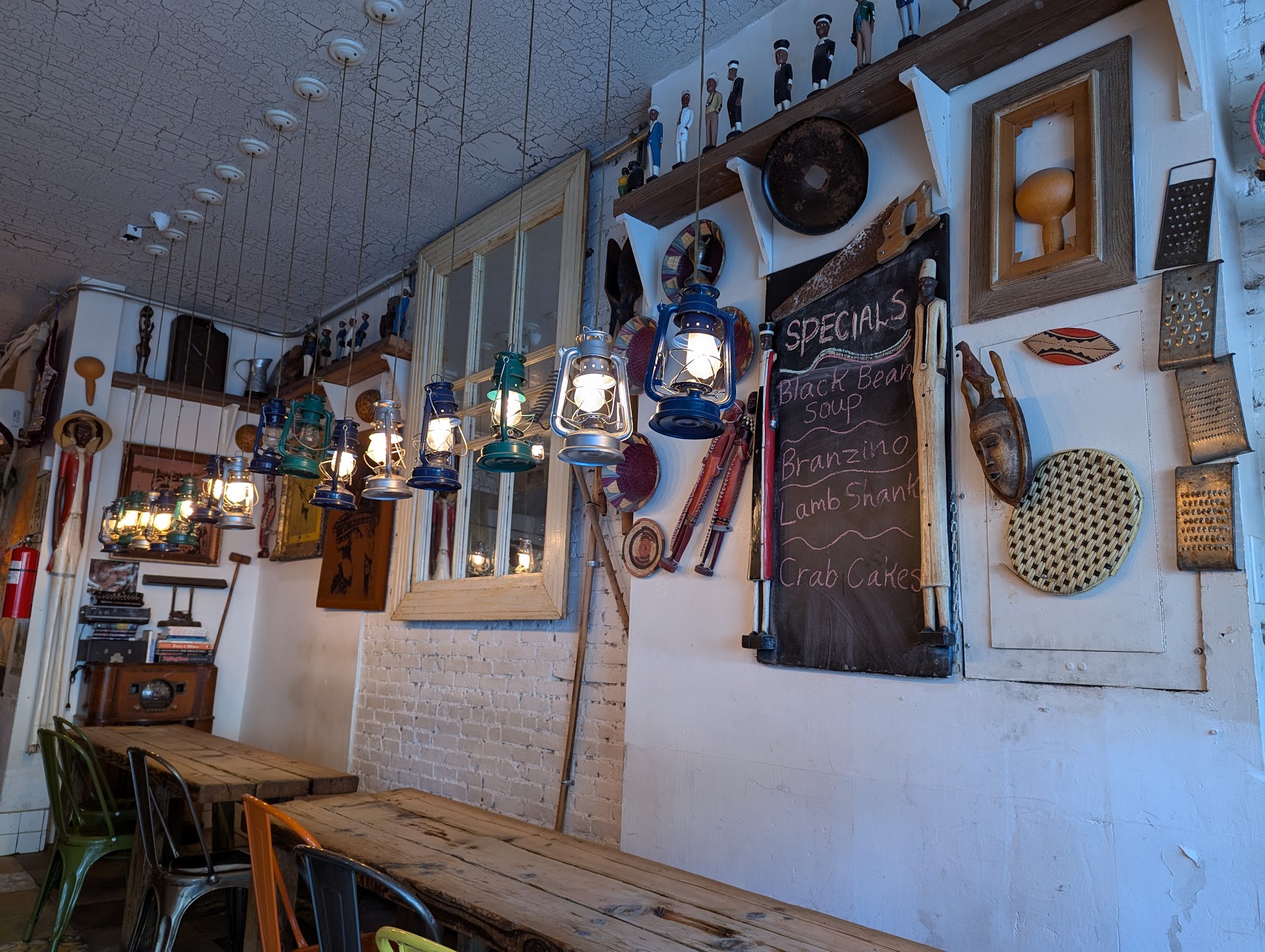 The whole place is a distinct vibe, even the bathroom felt like a very particular time and place (tidy, big enough I didn't feel claustrophobic, had a place to set my purse). The hostess/waitress was delightfully friendly, bustling around opening windows and setting things up, and she had spot-on recommendations for what to order (and what not to- a few of the drinks on the menu, they're missing ingredients right now because of supply chain issues).
