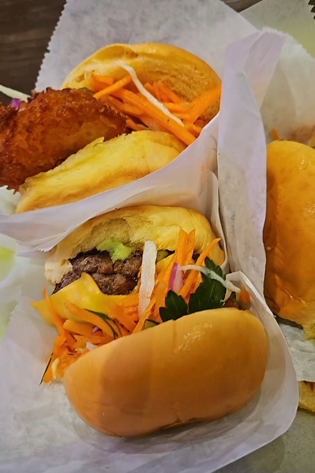 The coconut shrimp was incredibly crispy and delicious. It was paired with a flavorful herb slaw and a tangy sauce that complemented the shrimp beautifully. This was my first time having plantain fries, and they were a delightful surprise. They were crispier than your average plantain and packed with bold seasoning. The herb slaw was a standout both on the slider and on its own. It was crunchy and bursting with vibrant flavors that tied the meal together. The lemonade had a surprising kick to it; its spiciness was invigorating and sure to wake up your taste buds.