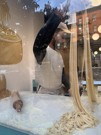 I ordered the basic fettuccine with olive oil, added some extra mushrooms, and topped it with the Yummy sauce. But the pasta felt more like something from a noodle joint in Northern China (but also much worse than those, Chinese noodles are very good actually)âsoft, chewy, and kinda wrinkly, not what youâd expect from good pasta made with semolina or 00 flour. And I noticed them carrying a huge bag of all-purpose flour to the kitchen, so that explains the texture.