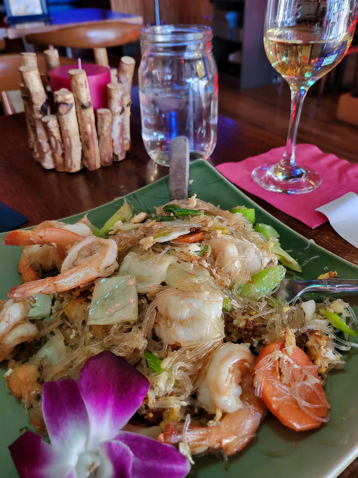 The food was bland and uninteresting. The tofu and cashew sautee was a bland, soy-sauce-based dish, not at all Thai in flavoring but more like a bland Chinese stir fry. The one thing they did right was cook the squid properly, but the massuman curry sauce had an aftertaste of rancid peanuts. They serve inexpensive cocktails made with sake--no hard liquor--and my lychee sake martini tasted like lukewarm fruit juice with a tiny spike of alcohol. It clearly had not been shaken.