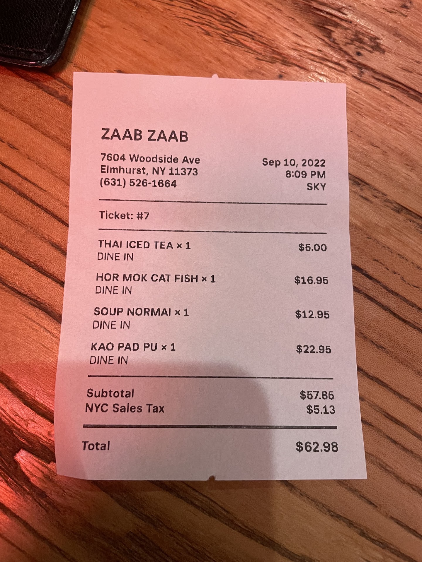 Read moreZaab Zaab means Delicious Delicious and that is what this place is. Cuisine from northeast Thailand, this is not your typical NYC Thai fare with spices and sauces in combinations that sing. We had the Thai green ice tea - refreshing on a hot day and cooled off the legit Thai heat coming from our dishes: