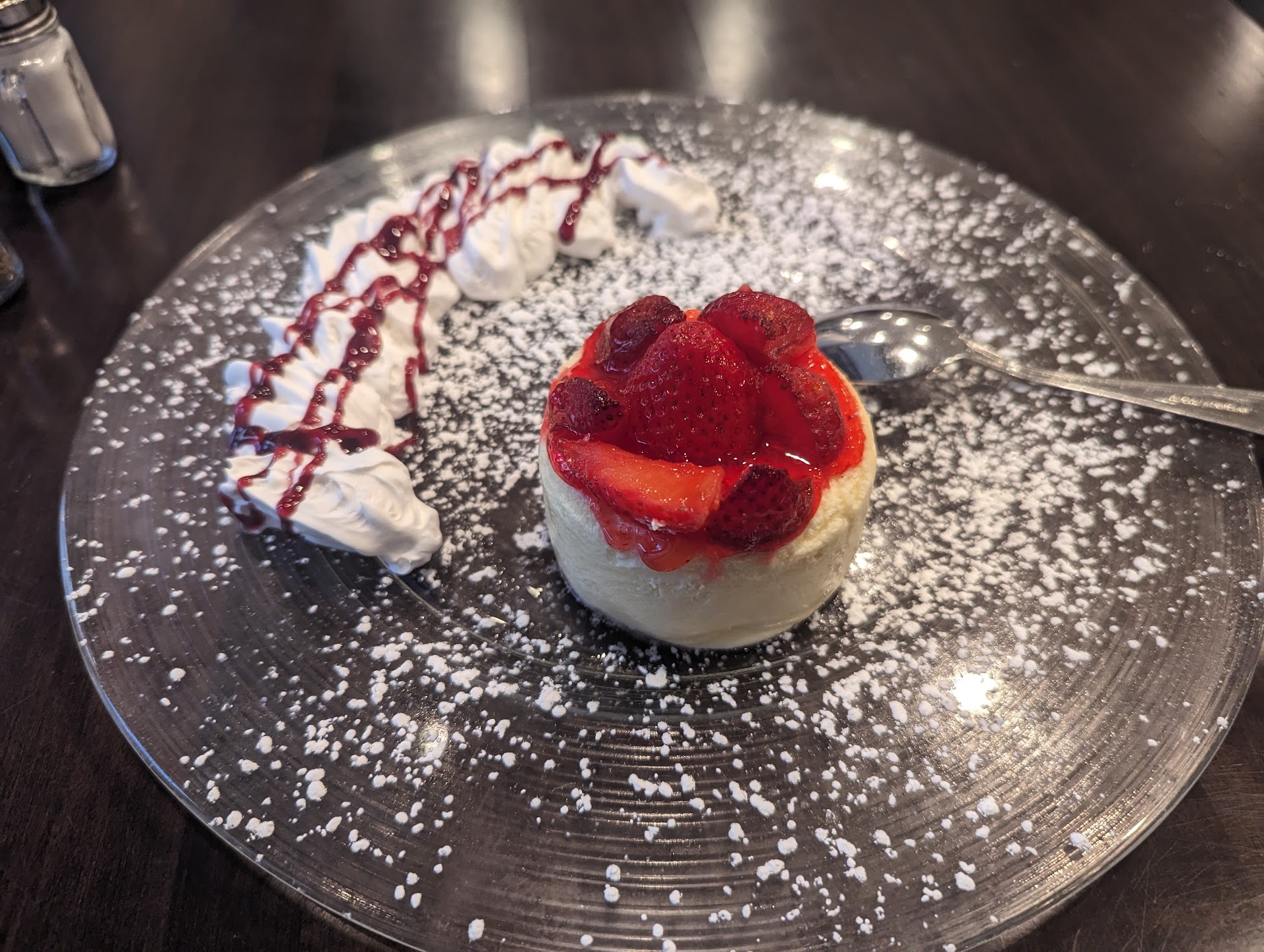 The weakest performer was the strawberry cheesecake, which was served and presented in almost a parfait-style (and even though I'm not a whipped cream fan because it's too whippy and creamy, I appreciated the attention to detail the waitress put into the prep). A few bites of it just tasted flat-out weird, almost like a metallic/sour taste. I'm not sure if something was off, and most of the bites were normal but in hindsight I would have bypassed dessert especially since I didn't exactly have a light meal.