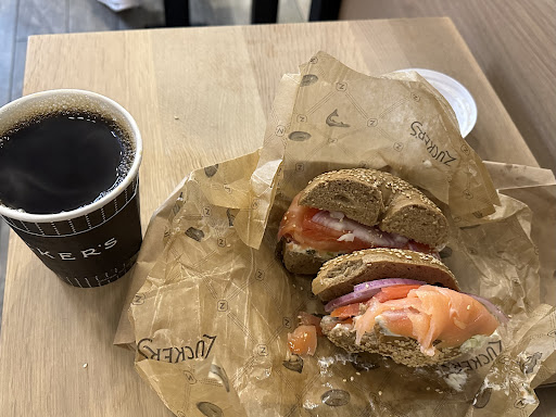 Read moreI came here on a sunny Wednesday morning. I had to go outside of my workplace to take a personal call, but as I stepped outside, I realized I was hungry. Thus, I decided to grab a quick bite to eat. I had heard of the bagels at Zucker's before, and I had also seen many denizens of the area order at the bagel stop before. Deciding to check it out myself, I walked down Greenwich Street, making a turn onto Chambers Street and walking down half the block before I made it to the store. The inside of the store looked like an upscale delicatessen, and I was pleasantly surprised to find only a short line in front of the counter. I decided to order a garlic bagel, toasted as anyone would, with plain cream cheese and smoked salmon. The bagel and warm and inviting to the touch; I am not embarassed to say that I squealed in excitement upon unwrapping the bagel. The taste of the bagel was delectable; the affluence of the garlic combined with the salmon and cream cheese to form an amalgam of senses in my mouth, all of which were positive. My personal call never ended up panning out to my expectations, which did put a damper on the bagel. I was told that there was a high volume of callers and that they did not have staff available to speak with me. Independetly of that sad situation, however, I do have some comments on items that I noticed as I meandered back to my workplace. The ratio of cream cheese to salmon within the bagel was off; in a future experience, I would prefer to have less cream cheese and a little more smoked salmon, as the cream cheese was slightly overpowering the contents of the bagel. A 50:50 split between ingredients would be ideal and preferable. Secondly, I do not believe that the price point matched the quality of the bagel, though the bagel was very tasty. I was charged $13.95 for the bagel, not including tax. I think that this is a little too pricey for a bagel, and I would be much more satisfied with my purchase if the price was within reasonable margin of bagel stops in the surrounding boroughs. I recommend this restaurant to any customer who does not mind spending a few extra dollars for a bagel, and who likes cream cheese a lot. Thank you, Zucker's, for giving me something to do while I was on my personal call. I hope my future phone calls to organizations do not go as badly as my...