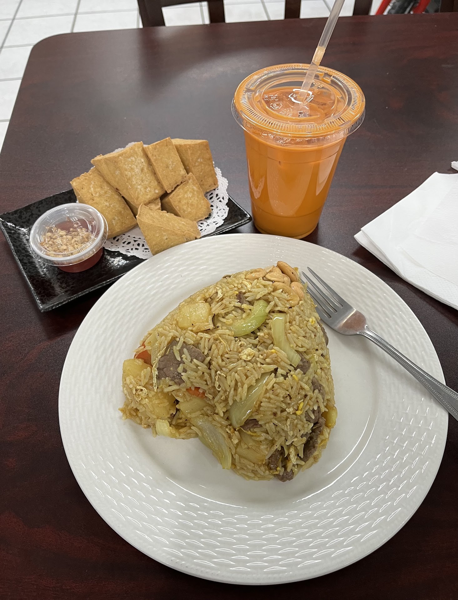 Read more9 Thai Cuisine seems to be the only Thai restaurant in the city of Newark. It is very authentic which makes this place even better. Their authentic dishes are lined up in trays as the meal of the day where you pick and choose which dish catches your eye. They also have large rice steamers with white and brown rice options. I haven't stopped in here in a couple of years, and since I was craving thai, I stopped in. Today, they had options of tofu Thai basil, ground chicken Thai basil, Udon noodles, fried rice, and a couple other options. I noticed there was a minimum purchase of $15 so I ordered the combo which consists of three sides. I then ordered the Udon noodles, ground chicken basil, and brown rice. Since that still didn't add up to $15 I grabbed a drink and added two spring rolls. They then charge a $1 processing fee for whatever reason so I paid a lot more than I expected to all because I didn't have cash on me. Next time I am in the mood for Thai I'll make sure I have cash on me. There is typically a long line, but today there was only two other people in front of me which wasn't bad. I was in and out. Overall, the food is very tasty and they serve...