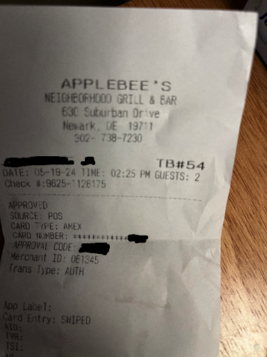 Read moreHelped a friend do a job last Sunday and afterwards he said let me buy you lunch and a beer, theres an Applebee's down the street we can go there. I stated he didn't need to that and I never been to an Applebees in my life so off we went. Got there around 1:00 PM and decided we were not that hungry so we ordered a beer and each of us got an appetizer. He got boneless chicken and I got soft pretzels with cheese sauce. Waitress say fine I'll put that in for you, she comes back 5 minutes laters with our beers and thats the last time we seen her. 40 minutes later a gentlemen comes out with our food and we ask two things, one how come so long for apps and can he get us another beer. He states they are backed up with orders and off he went. 15 minutes later our waitress makes an appearance at the next table and we flag her down to cash us out. Since this was my first time in one of their stores I can tell you there wont be a second. Folks quit patronizing place that hate that you showed up expecting to get good service and good food. From the person that sat us to every other employee I observed in this establishment were displaying anger that people showed up wanting something to eat. And listen to the folks that say " its so hard to find people to work anymore" ok I can buy into that but your lack of training of the folks you do have working is a sad statement of management. Attaching the receipt with the waitress name blacked out because this isn't about condemning working people its about owners and managements who hide...