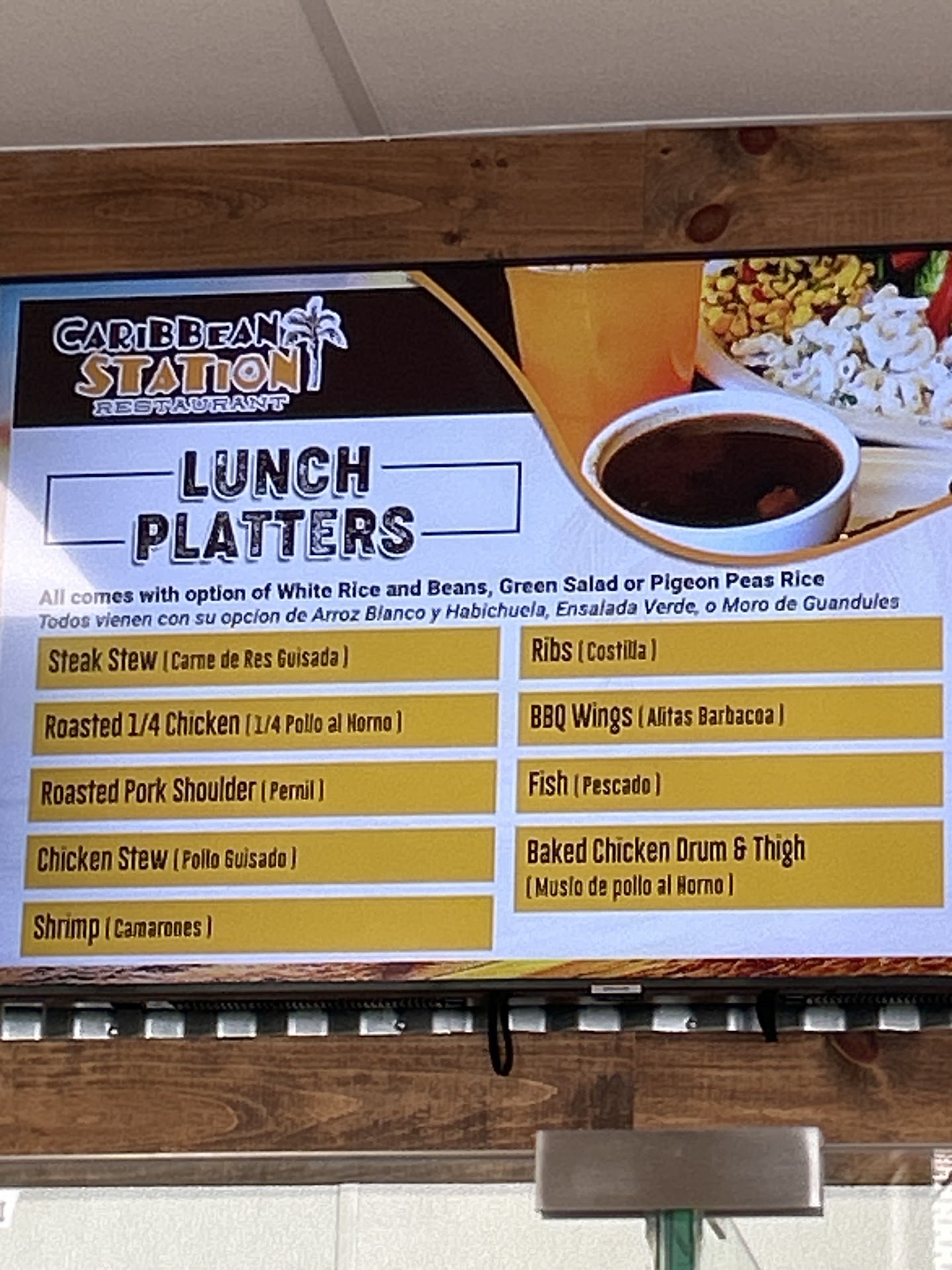 Caribbean Station has Dominican style restaurant options while Tropical Juice Bar has smoothies, juices and more grab go focused items such as empanadas etc.