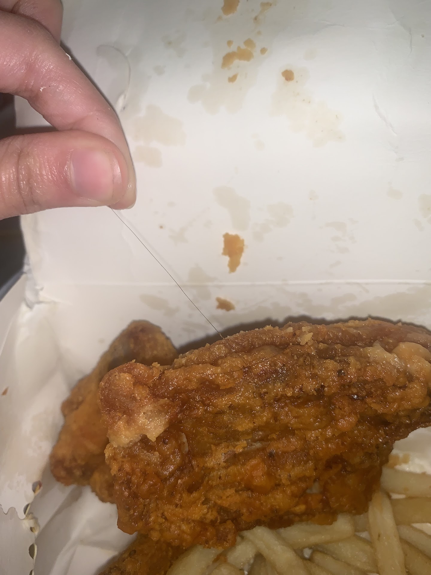 It was basically just bread , potatoes and a folded chicken Patty 𤢠. Even the French fries in the sandwhich had no salt or pepper , just soggy and bland with a ton of ketchup