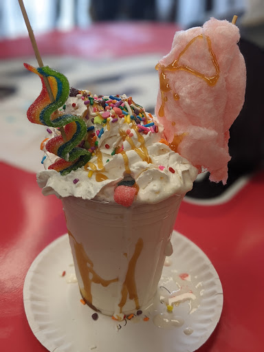 Read moreWe went for the first time tonight. The atmosphere was really fun and the staff was friendly (even though she mentioned she was working without any help). The milkshakes honestly didn't seem worth the steep price, it wasn't really anything special especially as a $12 milkshake. My husband and son both enjoyed theirs though (my son got a kiddie cup with sprinkles and my husband got the Coops cookie sandwich). Kind of cool for a special occasion but not something we could afford to frequent as it came to $22 for the 3 of us.