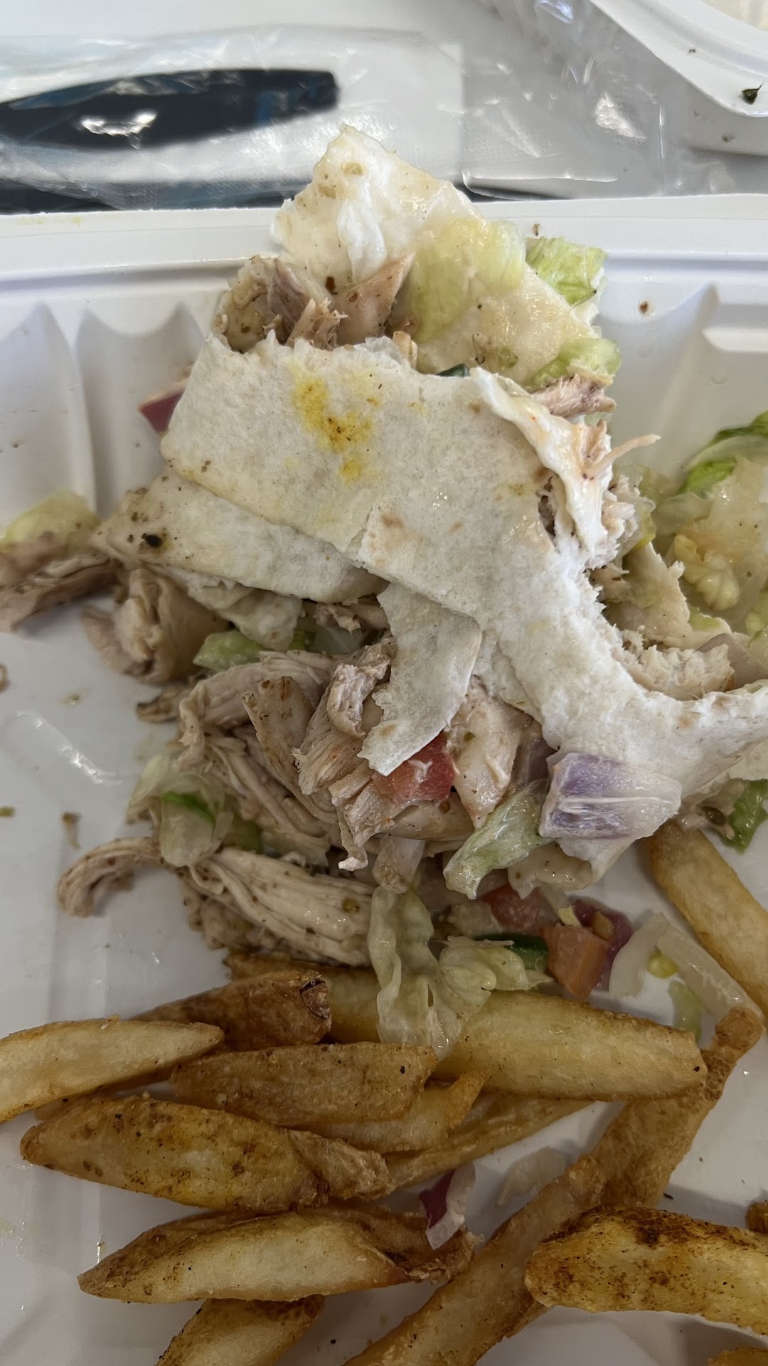 I entered this restaurant after an entire day of not eating. I had a flight from Phoenix to Newark, and having no prior time to eat, I was hungry. It was the best possible case for this restaurant, and Flora still managed to disappoint. First the water. We chose to not spend 8 dollars on a small bottle of water, so we got the tap treatment. I didn't know that they fill their water pitchers with a hose! It was bitter and borderline undrinkable. I bet I'd have a better experience with Flint, MI water than here. After waiting for a good 15-20 minutes, we finally got our food. I ordered Chicken Shawarma and my brother ordered the Chicken wrap. Upon arrival, we were immediately disappointed. Whatever they served was not Shawarma. The Chicken was both soggy and dry. Not even Shawarma style. It was just some mildly spiced drumsticks. Even my "egg salad to the potluck" grandma would think it was bland. The Amba that was served with this Chicken was also horrible. The mangoes were more brown than orange. Horrible. This "Shawarma" was also topped with onions that were rotten. I picked around them, but they were absolutely disgusting. Now to the Chicken wrap. I can't comment on the quality of the sandwich itself, but I did try the fries. With that said, who spices their fries??? The only spice on fries should be salt. Fries should just be consumed as a catalyst for ketchup consumption. They should not be spiced. After a few fries, my brother was suddenly in putrid agony. One of his fries was rotten. That put him off from the rest of the meal. For 50 dollars, this was not worth it. I would not be surprised if I contract a nasty case of food poisoning after eating at this...