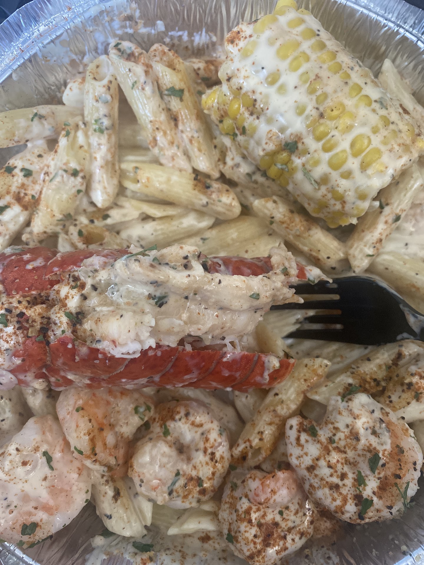 Read moreI don’t get the hype. If you’ve ever had homemade Alfredo sauce, you know the difference from jar sauce and homemade. This is jar Alfredo mixed in penne noodles, shrimp and topped with lobster and heavily sprinkled with old bay and a side of corn. I am not impressed. I could’ve made this at home. I may have felt differently if this sauce was homemade. Jar sauce is so...