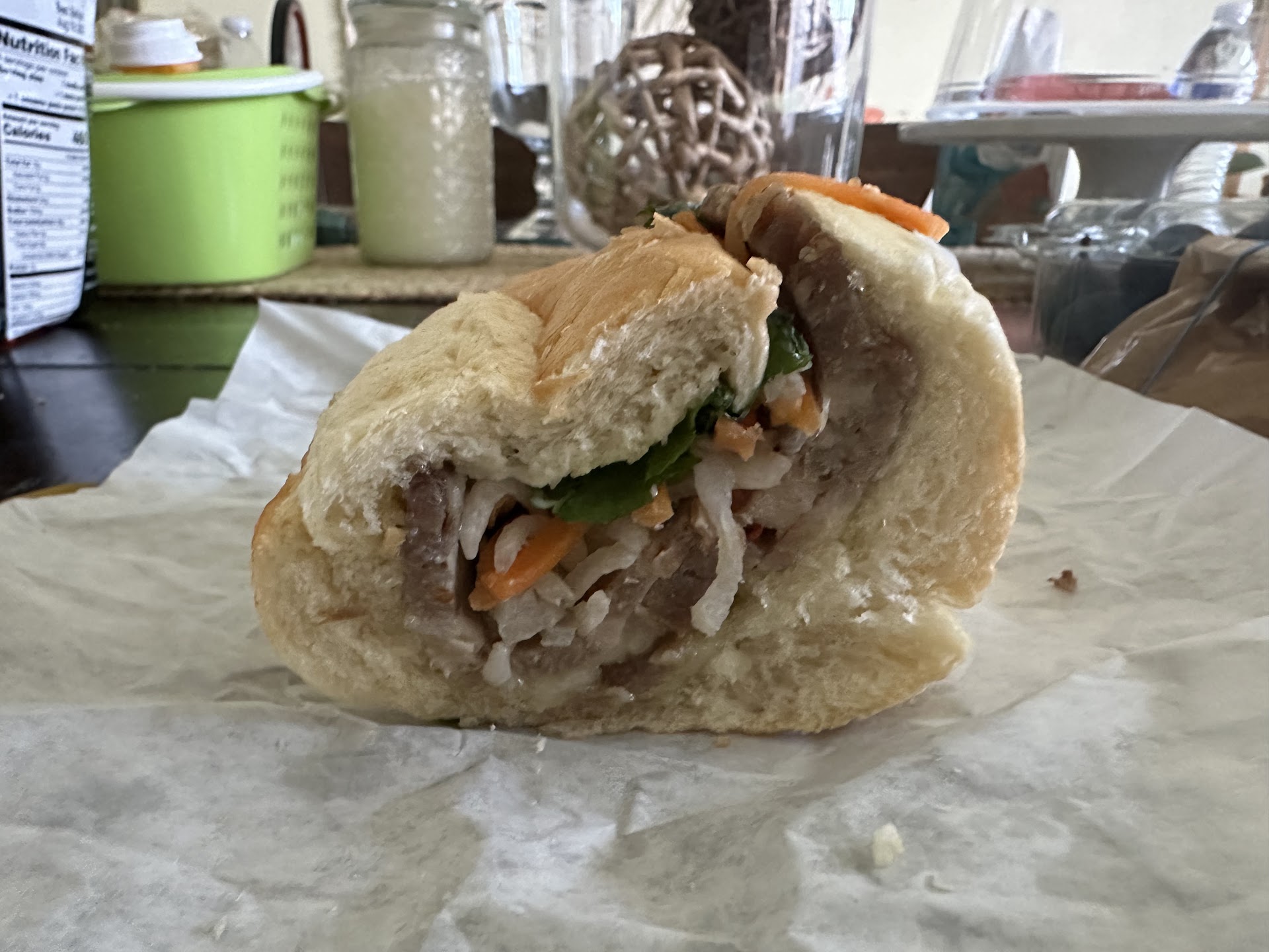 Service-wise, eh, it's just a sandwich shop. They also have pho and other offerings which I didn't try. OH! And they have some of those awesome dessert drinks ($1.50?). The ones with the squiggly fishing lures-looking things with coconut milk....