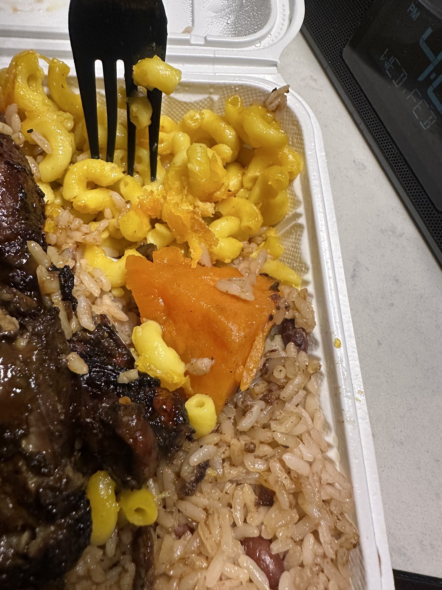 I have been eating here for a little under a year and the food has never disappointed me favorite is the curry, goat, rice and peas, cabbage and plantain. However, I have tried the fried chicken red pea soup , jerk, chicken, oxtails, curry chicken, beef patty. Regardless, what you pick you’re gonna find chunks of ginger in it, so be careful as you eat some meals are spicier than others, but all are very flavorful in my opinion. I am hoping in the future to try the salmon option when they have a fish fry in the summer. I personally do not like any Jamaican restaurants, macaroni, and cheese, so I have not tried their version at all, nor have I tried the typical African-American sides like collard greens, candied yams, and so forth. I stick to the typical jamaican options for sides. I see signs for roti too never tried that yet . Rank the atmosphere three out of five because the neighborhood is a bit rough know in the area so be mindful of limitations on parking and people randomly standing on...