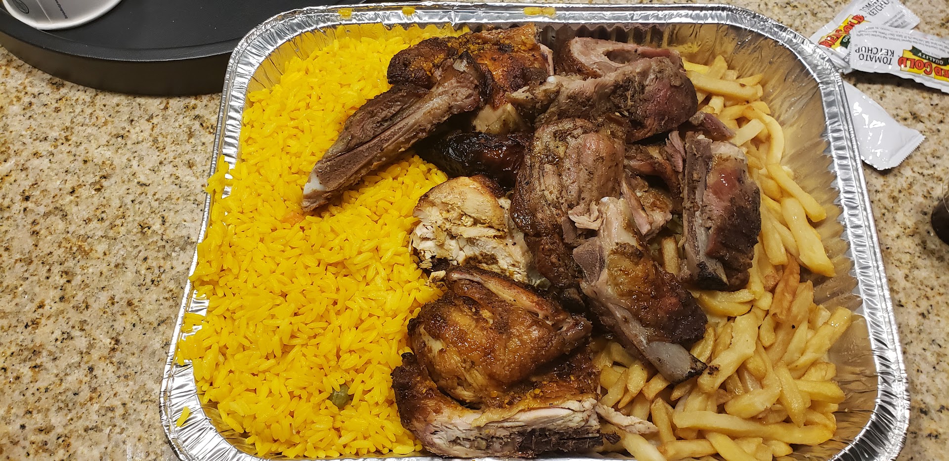 Looks can be deceiving, lol. While it looks decent upon arrival, once you share it up and taste it you can see itâs not really worth having. Everything has absolutely no flavor. The fries I asked for crispy but it tasted like old fries that were put back in the grease (I used to cook). The veggies were alright and looked like they had some seasoning on them but nope, not a drop of flavor. Please make use of that lemon and grab some garlic and salt folks.