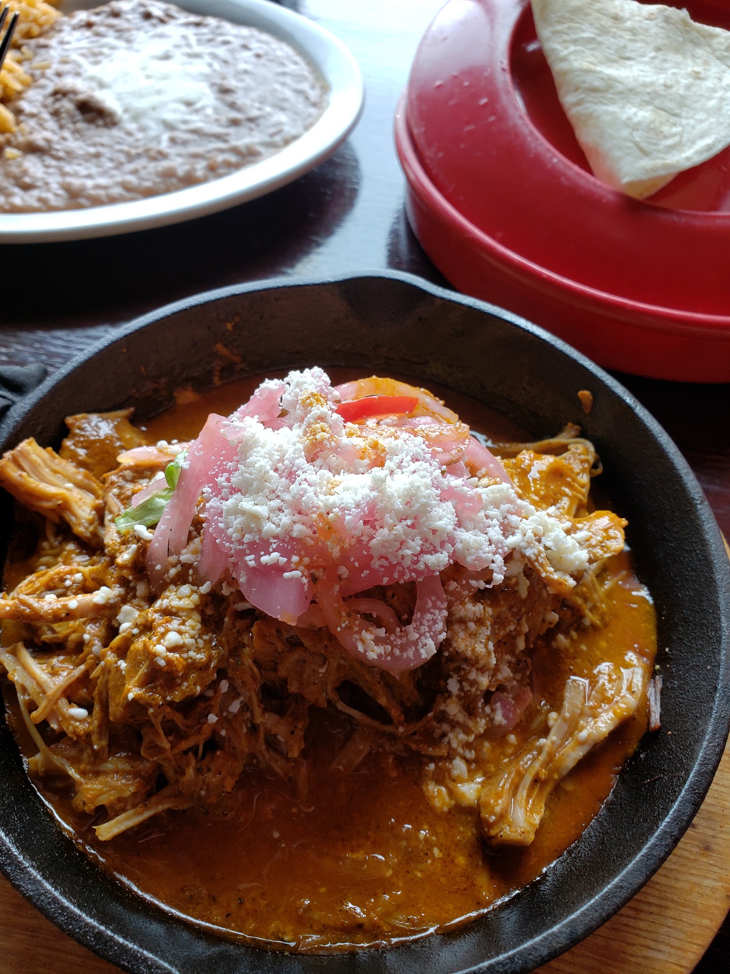 My parents loved the house salsa, they are Mexican and know good salsa...and mom thought it was spicy so that was a plus! We ordered a nacho plate as an app. I asked what was included on the nachos as my brother/I don't eat sour cream, and I don't eat spicy. The waiter noted there was just cheese, beans, avocado, and Pico de Gallo....perfect - I asked for the Pico on the side. The dish comes out with Crema, jalapenos, beans/cheese/avocado as mentioned. It would have been nice to note that the crema and jalapenos are also on there.... Mom ordered sopitos, with carne Cecina (a crunchy yet delicious jerky type meat). I for one love a well cooked carne asada....this Cecina was beyond jerky. It wasn't fresh and it was impossible to chew...the sopitos were tiny, but she liked them. Brother ordered a carnitas plate - the menu listed just the meat, beans and rice. Cool, he ordered that, but it also came with jalapenos and a salad with cheese and 2 dressings. That went untouched, but he was able to make 3ish tacos. Beans had cheese, which he doesn't eat, so he didn't try them. I ordered a plate of plain cheese quesadillas. I asked how big the quesadillas would be to see if I need a taco - he mentioned they were small but they came with rice and beans. Perfect...i ordered myself a carne asada taco, plain. Out comes out a red-looking meat taco (which to me looked like Al Pastor) with salsa and cilantro/onion. That taco went untouched, and I didn't send it back because I already had to send my quesadillas back - they put crema on one, and guac on the other. The gentleman was nice and came back out with a 'crispier' quesadillas. Awesome.....but i was unable to find the cheese!! I would have though they would make the quesadillas cheesy or at least add more than one string cheese....the disappointment continued when the beans were plain. I rate my Mexican food places on 4 basic items: a cheese quesadilla, rice, beans, and a carne asada taco. Each item let me down. Dad.....poor dad. He ordered his 'SEAFOOD' platter. Now, if you've gone to other Mexican food places, you know what this should have (a mix of seafood: shrimp, fish, crab, oysters, squid/ceviche, fruit to decorate). They warned my dad the platter was $60 (they said it was expensive, but to us it's the norm if you order SEAFOOD) and enough for 2 people. They come out with an appetizer platter. IDK if they know what seafood is, but this seafood platter had 2 styles of shrimp (breaded and the ketchup style one 5 pcs each), 5 chicken taquitos cut in half (half had crema, half had guac), 5 chicken wings, meat under a salad, pieces of orange, avocado, a side of beans in a cup.....Where was the fish? a few crab legs? oysters? squid? the only SEAFood i could SEE was shirmp.....and absolute let down.