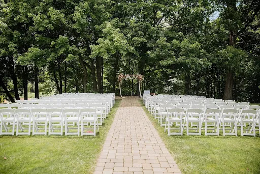 ALSO - I attached pictures to show the reception space, the ceremony site, and what it looks like full/empty. We had 120 and it was a perfect fit. Those over 120 often have to rent tents, but they have tables for about 180-200 I believe. We had the dancefloor outside with the DJ but you could have it inside as well. Bar is near the TC Lounge and buffet style food is served from the other side of the bar. We had a sweetheart table which was perfect for us to see everyone throughout the night. The golf course is where all of our pictures were taken and there are so many good spots it is hard to pass up. The bride is dropped off with a tinted window van (so comfortable) and then it naturally drives away to reveal the bride. Then your wedding party comes in on golf carts and leaves on golf carts, but they are parked nicely and away from the ceremony site. If you like whimsical, woodsy, and green this place is for you! Note the drapery in the reception were not apart of the club and are additional charges from Party Pleasers but they have a Trout Club Swag set that you can order with Amanda's help if needed.