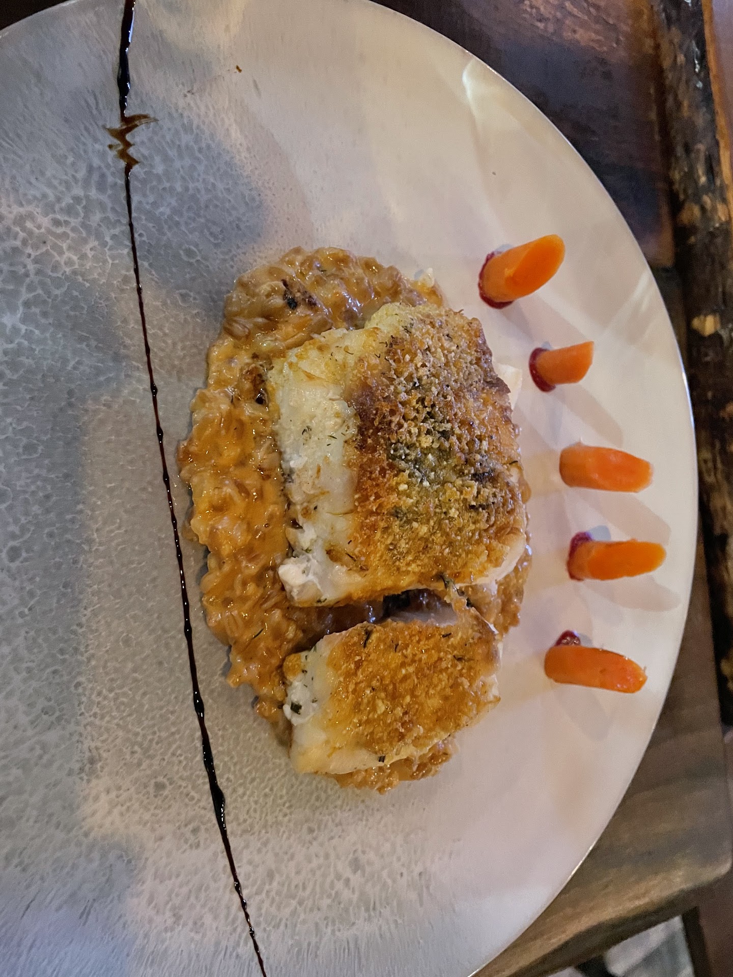 Second the risotto was salty and it was returned. a replacement risotto arrived. The “chef” stayed at the table to watch us retry it. The person trying it was shy and said it was good. We then all tasted it. Also salty, inedible after 3-4 bites.