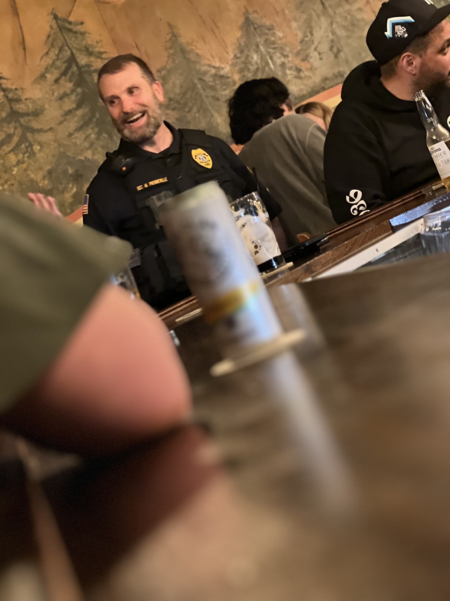 I took a photo as I felt it was inappropriate for a police officer to be on duty having a drink. The bartender got upset, took my beer, and asked me to leave. Which is funny because I already paid. The situation was handled poorly but the chilling part of it all is that the officer came into the bar in uniform, and as I said before, gun in holster, had a drink and was comfortable doing so. Meaning this is a pattern.