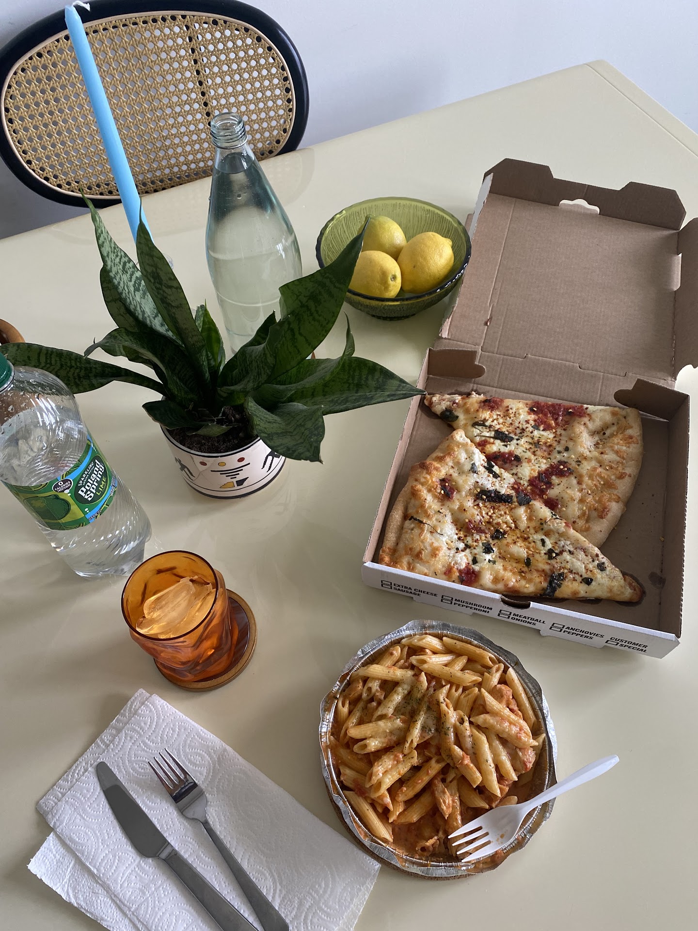 Upon entering this restaurant, you're greeted right away! The staff is very patient and helpful. Our soup and slice came out in a timely manner (the sweet spot in between too long and too fast, it was just right!) I loved the cheese slice, delicious crust, perfect sauce to cheese ratio! The chicken soup is seasoned very well and the vegetables were perfect; this is a great place to grab a hot soup in the winter or if you're starting to feel under the weather. Wings are nice and juicy but also crispy, a side of broccoli to balance it all out is a delicious choice! The vodka penne came out a little dry which kind of made it the least favored item in our big order. But the manager/owner (?) was really accommodating and added more sauce to our to go order, this made it a very delicious plate to eat as leftovers later that evening. I was really impressed by this place, I'd definitely return just for a slice and...