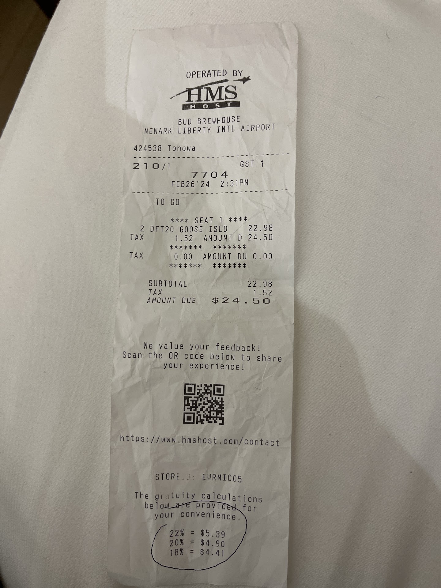 Read moreZERO STARS IF POSSIBLE! I came here before my flight and before security check in. I waited 10 minutes to be served while there were only 5 people in the restaurant. The server never even looked at me and in fact, would (seemingly) turn in the opposite direction when walking away from a table in order to avoid making contact with me. Finally I went to her and she barked at me: “I’ll be there in a minute”. I waited. I ordered a pint and then another. When I went to pay my check the waitress printed my receipt and ( in front of me) circled the bottom of the receipt where the tip calculations are. For 2 pints of beer my total was $24.50 and the waitress insisted on not accepting the $30.00 I offered because it was not enough tip. Because I had to leave to catch my flight I could not spend the time to argue. I was charged for 2 20oz beers instead of 2 16oz beers and I was forced to tip an unfair amount for horrible service. This woman preys on people, is horrible at her job and rude to boot. Ask for Tonowa, if she is your server go...