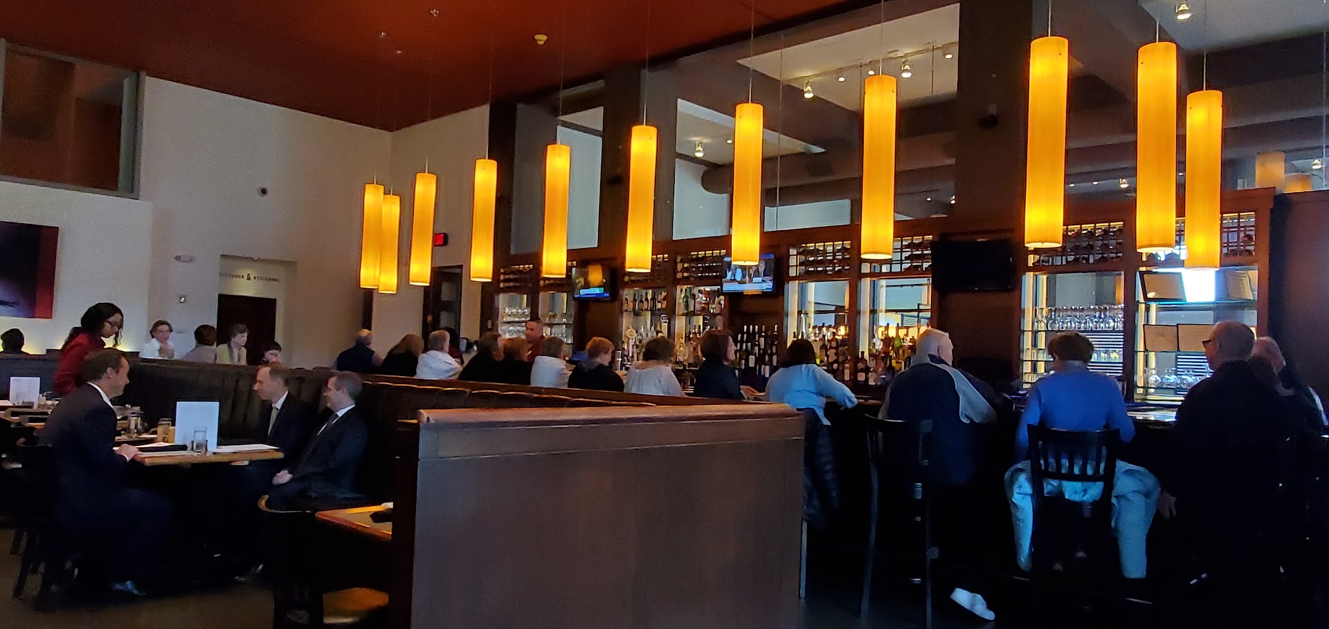 Read moreOk, This was our second sub-par visit, and we've now made a mental note to by-pass this place. The place gets two stars from us, for being conveniently located steps from any NJPAC performance. The drinks were average, at best. I was starving and ordered the salmon. BIG MISTAKE. DRY, DRY, DRY, no taste. No seasoning whatsever! The soup reminded me of the can tomatoe soup I had as a kid with my grilled cheese sandwich. The only difference was, it looked like the chef threw some white kidney or butter beans in the soup. My husband wasn't as hungry as I was, and ordered the crab cakes with cabbage. Crab cakes were hard as a rock, and cabbage was tasteless. We thought we had plenty of time to make it for an 8:00pm show. NOT. We got there at 6:00pm ish. Ordered right away, but still had to wait extensively for our food to arrive. Arrived at the performance late, even though we were steps away. Ordered a cocktail. HORRIBLE, had to send it back. The Manager never came over to ask us how our evening was going. Funny, he asked others around us. Hmmm?? Others around us complained as well about their food, and were given free drinks. We didn't make a reservation, so we had to sit in the bar area. We weren't given a choice actually. Didn't realize that sitting in the bar area would make a difference in the menu options. We were never told that. It's a shame because this place is so convenient when going to see a...