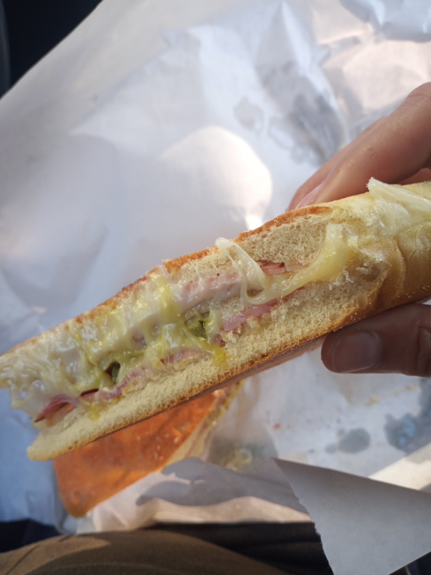 The cafe is small but can accommodate about 20 to 30 patrons much bigger than your typical cafe....very well maintained and clean ....excellent decorations and memobilia of the past years ...fresh made juice drinks and hot prepared food buffet as well as sandwiches and alla carte dishes to order. I've been here before about six years ago prices were less than but it's the sign of the times....some prices are reasonable some are slightly higher but the quality of food and portions are very good .To start I had for starter a cup of coffee with a (chicken empanada/pastelillo ) cause it was so delicious better than an empanada looked more like a pastelillo flaky crust stuffed with well seasoned shredded chicken ....A+ NEXT I ordered a Cuban sandwich ...WOW...on point delicious bread toasty inside the cheese was melting (nice cheese pull) flavors of the ham,pickles and pork (pernil) what was missing was the mustard not a traditional Cuban sandwich maybe they forgot to put it or maybe it must requested still was delicious....my only concern was the menu had no prices and the menu screen above displayed had no prices just have to take there world on it.i guess we are relying on the cuban honor system like in cuba different prices for different days or different customers ,this was suspicious ....TIP OF ADVISE put prices to make it a ligit establishment and 5 star review...another issue they have is beggers standing outside asking for money and one lady comes asking I paid for coffee and butter roll just to her to go...