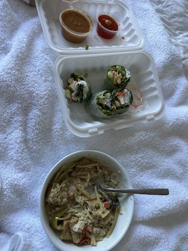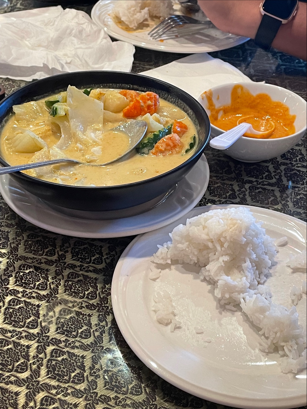 Read moreNice, small and quiet place with great food! We were there as a family of 5 for lunch...the person behind the counter was nice and friendly. For appetizers, we ordered the roti and pepper garlic prawn. The roti was a little too oily though tasty and the prawn was quite good though not as spicy as we thought it might be. Our main course order of red curry with steamed rice, basil fried rice (both veg and prawn) and an eggplant veg dish were all pretty good. We had asked for them to be spicy and the dishes were all quite well spiced. We enjoyed the food - nice flavors, the portion size was great and they were served reasonably fast. Overall will surely visit again whenever the Thai food...