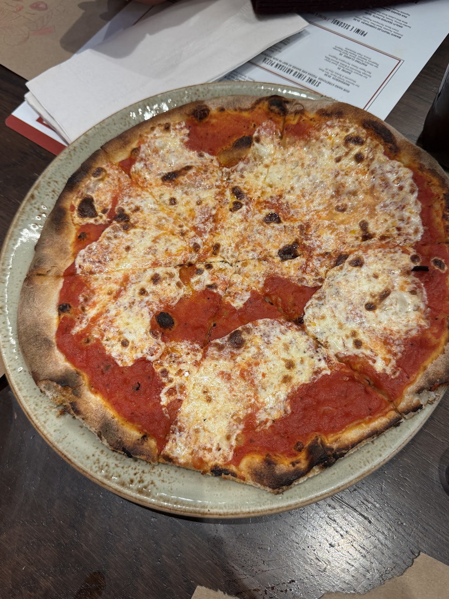 Let’s talk about the pizza first. Imagine a chef who took “wood-fired” a little too seriously—our pizza arrived with a beautifully charred crust, so expertly burned that they thoughtfully pre-cut off the worst parts. How kind! The flavor? Oh, it simply wasn’t there. Bland, uninspired, and somehow managing to taste like nothing. A true feat of culinary emptiness. And the best part? No basil. Despite other diners getting basil on their Margherita pizzas (as confirmed by both nearby tables and past reviews), ours arrived as a sauce-and-cheese-only special. Maybe basil is an exclusive ingredient here.