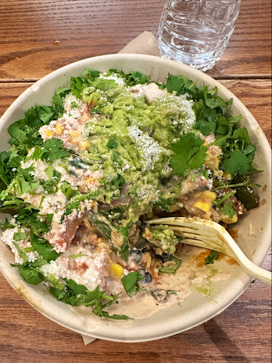 This is a build-a-burrito type establishment so you do the normal thing. They also offer different kinds of nacho's and tacos as well. The place had a nice clean look to it. It wasn't very busy when I came in to pick up my online order. This place is pretty large, right there with the size of Caltort across the street. I still don't understand why they have 4 build-a-burrito places on one street...The service was good, I had everything from my order in the bag.