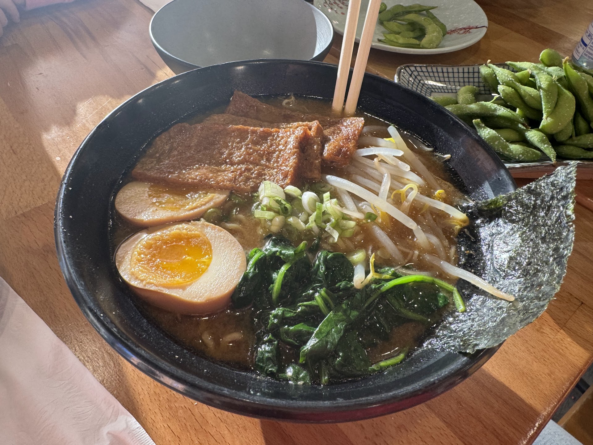 Read moreMy family and I love everything about Ramen Gami! We’ve been coming here since the first day they opened. We usually eat our food too fast to take a nice picture because it’s so delicious, but I finally got one today. The miso ramen is truly the best ramen on the planet. I really have never had anything even close to this good from any other place. The noodles have the perfect snap to them. The broth is expertly simmered to perfection. The other soups on the menu are also amazing; Udon, Tonkatsu, Shoyu. And you can opt for extra noodles or even vegan spinach noodles. They are very accommodating for vegans and vegetarians as well as those with nut-allergies. Since it was Wednesday, I ordered their incredible Curry Katsu Tofu to go as well. We also got vegetable dumplings, edamame and an avocado roll, all amazing. Seriously, every single thing on the menu is incredible. This place is the best spot for a comforting, delicious meal made by wonderful owners and their staff. You can tell how much they care for what they do because the food is always consistently delicious and served with a smile. Please do yourself a favor and try...