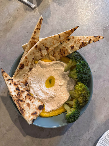 The hummus is very light and airy and the squash was perfectly sweet, mixed together with the savory hummus? A wonderful combination. We could have used a few more naan bread or broccolis but otherwise.. delicious.