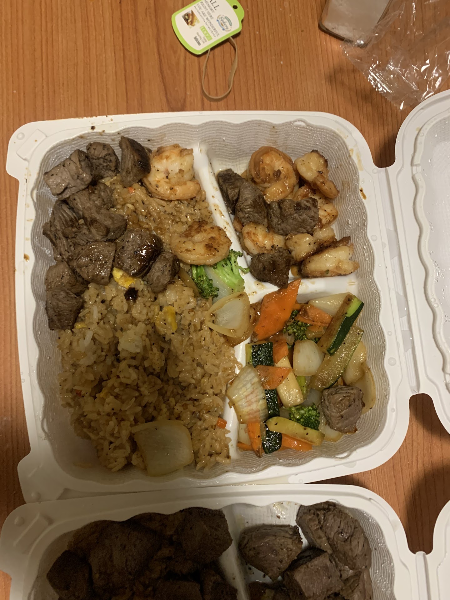 My partner and I arrived to wakatobi around 9:40ish PM Wednesday, May 15th, 24. I wanted to leave but my partner did not so we gave it a shot. While looking at the menu the two men working in the front barely helped or seemed to want to be engaged with us. We ended up ordering the steak and shrimp and the steak chicken and shrimp habachi combos to go and this is what we got. Got all the way home and opened our food and these exact pictures is how we first saw our food. We did not touched it AT ALL before taking these pictures . Trusting the reviews and trying to be open and give small businesses a chance this is how we are treated. The little bits and pieces of steak and shrimp we did have were absolutely TERRIBLE tasting. Non-pleasing what so ever. We did not get chicken AT ALL after they repeated our order back to us EXACTLY HOW WE ORDERED it. Absolutely terrible. Given we live 30 minutes away and that we spent almost $100 here, I will seek to get something refunded or take them to small court claims because this is...