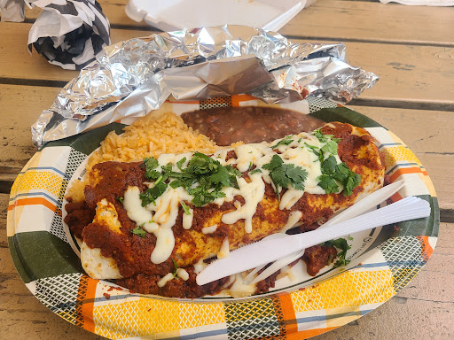 Sadly, the Mexican food truck I was hoping to get food from was closed, but another one was open next to it and it didn't disappoint! I ordered a burrito mojito (basically a smothered burrito) with chicken and red sauce, and it was delicious! The sauce was very spicy (I think I have a pretty good spice tolerance), but super tasty. The burrito was very large, filling an entire long oval disposable plate. I'll definitely be coming back...