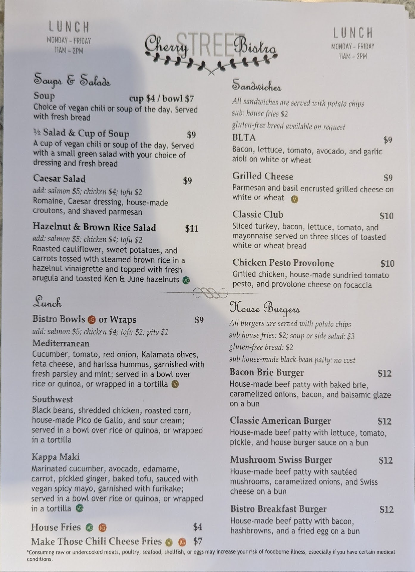 Read moreLove their hot chocolate in the morning...Love the hamburger with caramelized onions and melted brie for lunch with great fries...And the dinners are fabulous and so reasonably priced. We have tried the roasted salmon, beef stroganoff (a special one evening), fried calamari, Caesar salad, beef stew (another special). Well worth checking out for breakfast,...
