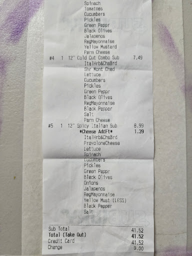 Also you guys might want to educate your employees on how to ring out customers she was going to charge me 32 for a six inch 33 $6.99 and a foot long chicken breast $10 and some change 1 meal and one extra bag of chips. I calculated it and it came up to $24 dollars and that’s what I ended up paying because I had to tell her what to tap on the screen. It’s concerning that she might of over charged customers in the past...