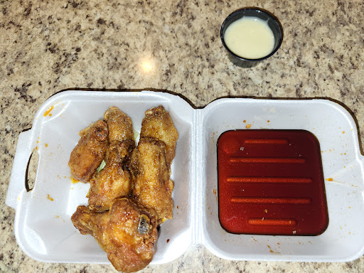 Ā Ā Ā Read moreFirst time customer š Service was great.!!! Really clean and nice. Restroom was shiny clean. The menu is easy to read. I ordered 10 wings and onion rings with blue cheese. Hot is the flavor for me. Food came in about 5 minutes. The wings were so small ( I'm from Florida and they are twice the size). I forgot to order just flats , no worries though. The blue cheese was in these cups that you get off the truck not good. If all you sell are wings how long would it have taken to make your own fresh ? The onion rings were straight from burger king I think. Luke warm truck rings. 12.00 with,tea Lot for that. So sad was looking forward to finding a good wing place. Thank you I'm off to find the...