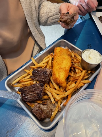 Everything sounded amazing (the Roman pizzas, fried chicken, seared salmon and tuna, “Rip steak tips,” halibut sandwich, etc), but as a Vietnamese woman, I had to try the pork bánh mì and make sure it was legit. 🙂 It didn’t disappoint. The pork was nicely seasoned with a perfect touch of lemongrass and there was even pâté and the traditional veggies on the bánh mì (cucumber, cilantro, and pickled carrots and daikon radish - a sign of bánh mì legitimacy). My husband had the perfectly cooked fish and chips. The haddock was fresh and cooked perfectly flaky. We shared a few cocktails and those were also delicious. I literally wanted to try everything on the menu and have a feeling we’re going to be here again...