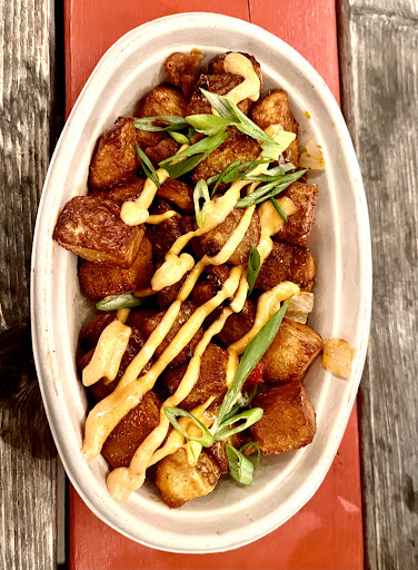 Noticing other reviews, there is a chorus about the basic nature of the menu. The menu is simple and basic, but nonetheless very appetizing. It is not the culinary mecca, but rather a place to enjoy the fresh salty air, with a vibe of levity, great views and open air dining. The service is outstanding and my server Erin, was ever so friendly and joyous. I started out with the Patatas Bravas, which is a fancy way of saying Tater tots. They were very flavorful with a tasty mix of sautéed onions and roasted peppers. Being summer and in NE, I could not resist having the quintessential Lobster roll. It was very hearty and mouth watering, with a very decent amount of Lobster and not overly dripping in sauce. It was a good complement to the mundane but delicious taters. It comes with a side of chips.