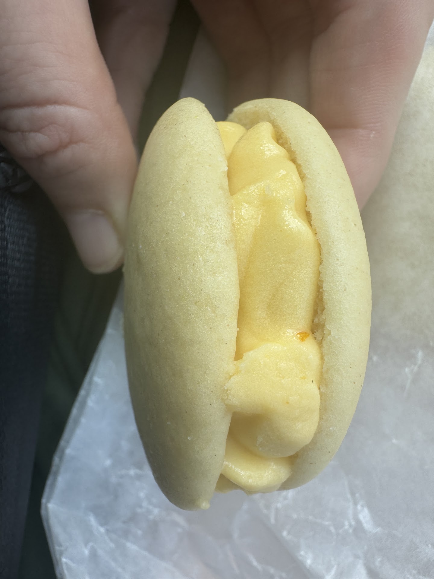 Julie came out of the kitchen a few minutes later and saw me sitting. She asked if I had been helped. I told her I had not. She asked what I wanted and I told her the passionfruit whoopie pie and she rung me up and even gave me an extra.