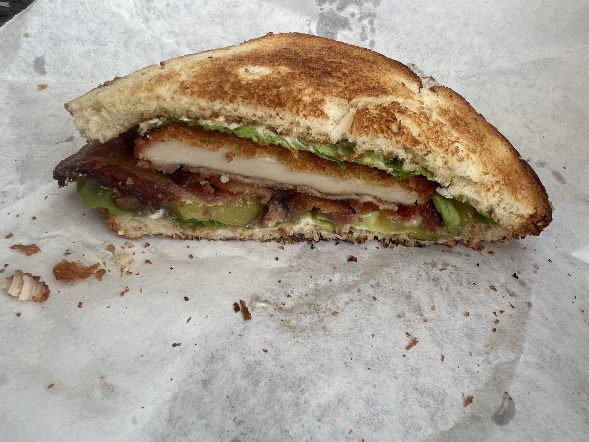 Read moreThe staff is friendly and the space is very nice. We’ve been in a few times but this was our first time ordering food. It was very disappointing. The prices are very high (almost $60 for two sandwiches, seltzers, and small bags of chips, plus tip). We waited 25 minutes for the sandwiches and they were pathetic. Spending $4.50 for chicken and having it on only 1/3 of the sandwich is misleading at best. We expected high quality ingredients but to our sandwiches both had what looked like romaine lettuce, sliced white bread, and cheap pickles (green like they’ve been chemically pickled)). And I’m not sure where the tomato went but it wasn’t on my sandwich. We won’t be giving the food another shot and neither should you.