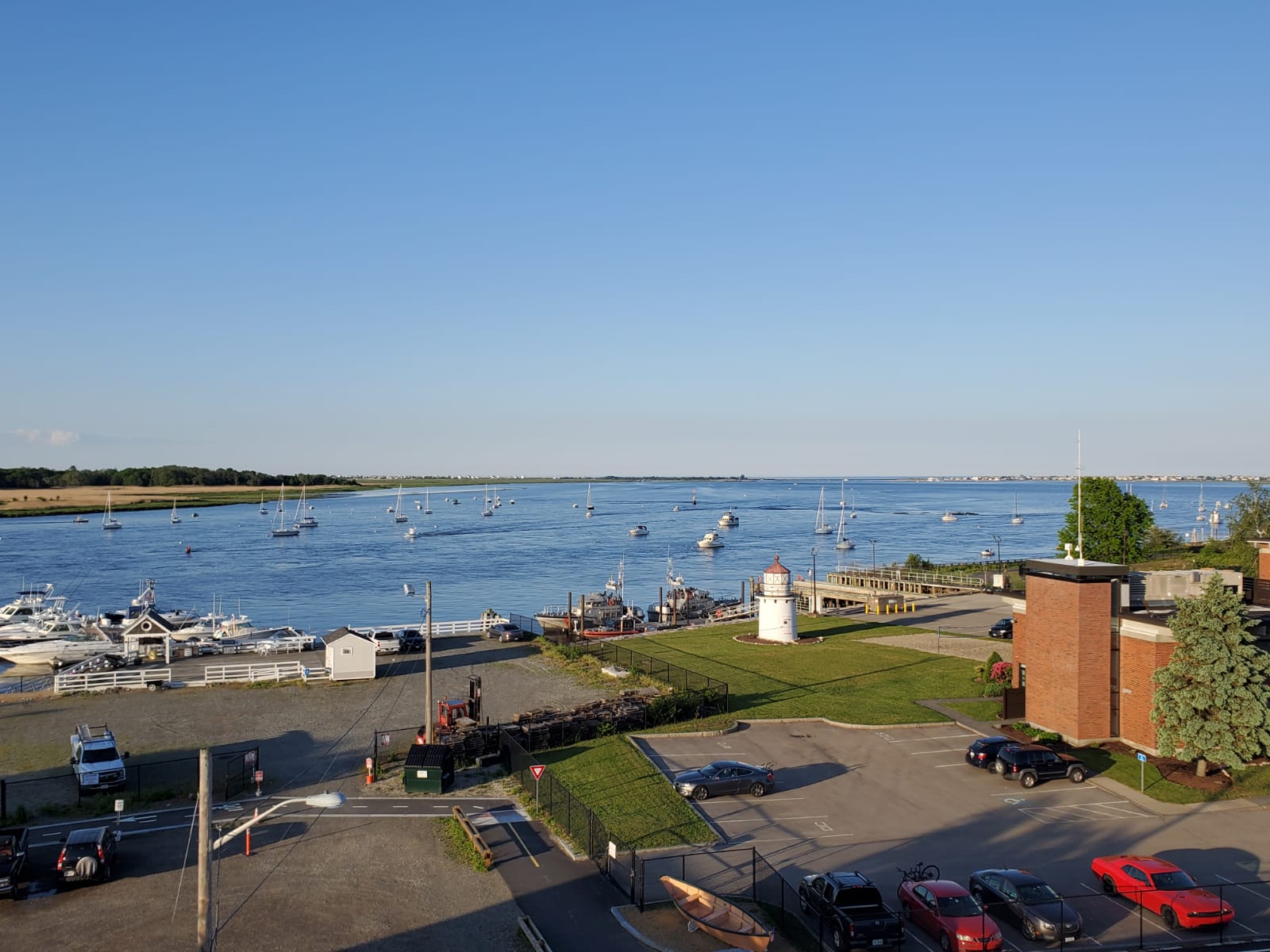 We reserved a lunch time and met our waitress Melissa at the Starboard Galley restaurant who was so nice and helpful. We made our bathroom trip since we didn't want to have to make any unnecessary trips down the dizzying stairs. She lead us all the way up to the lighthouse and showed us what to do with the trap door the folds down so it's more comfortable to move around. I'll admit the space was a little tight for 4 people but not a big deal. Make sure you wear comfortable shoes for the climb up the steps and the ladder. Props to our waitress for having to do this 4 or 5 times to bring up our food! Amenities include a Captain's Log dating back to I think 2008 where people can write about their experience. It's so nice to read about the engagement / anniversary stories then adding our own. There's also a stereo that you can put in some CDs that they have provided to add some ambiance music. The best part of course is the little latch door that leads outside onto the deck of the lighthouse so you can walk around and take in the 360 view of Newburyport.