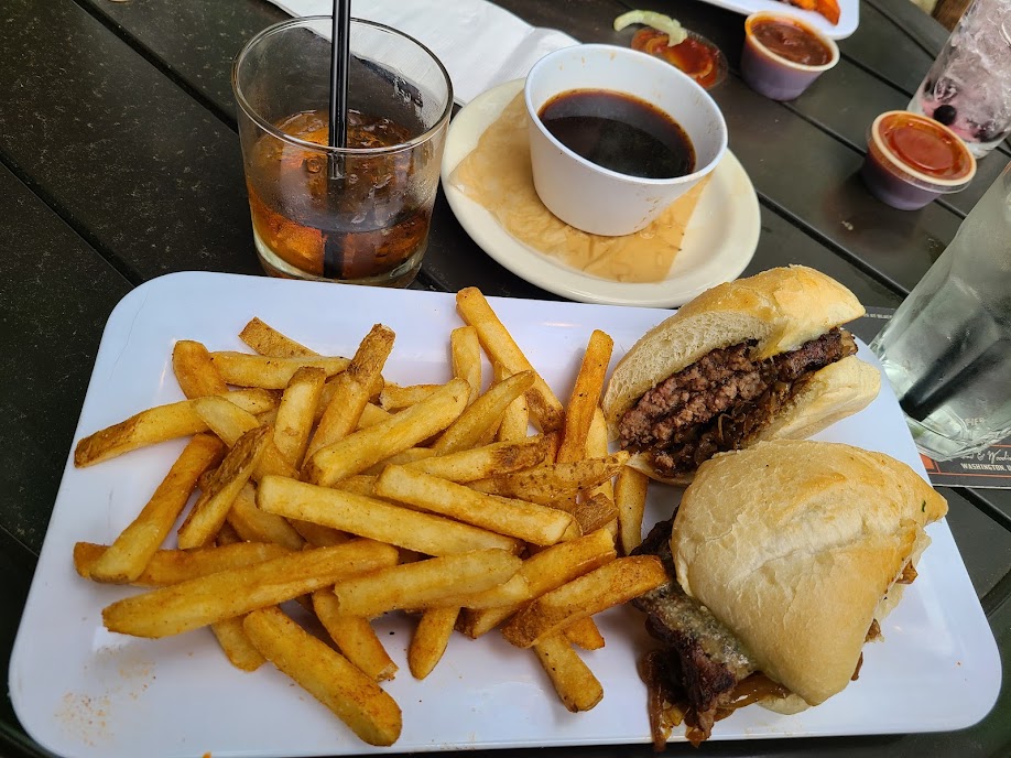 We received our food after another several minutes and it was really tasty! The burgers were cooked to perfection and the fries were seasoned very well. The chicken wings were juicy, big and the flavors from the dry rub and sauce was amazing. My sandwich did start falling apart and became mushy after a few bites though which is unfortunate as I am a slow eater. We got checked on maybe one time and it was close to the end so it is really hard to rate service as there was a lack of service. The bartender and the person who delivered my drink was very kind and helpful while the cashier/waitress we had didn't have any customer service skills. I would be more lenient if it was busy but it wasn't really too busy. We came in at a good time where most of the people received their orders and were just chatting or paying. Yet despite this, we didn't even really get to enjoy the full experience of dining here especially their endless fries cause no one would really come to tables unless it was vacated.