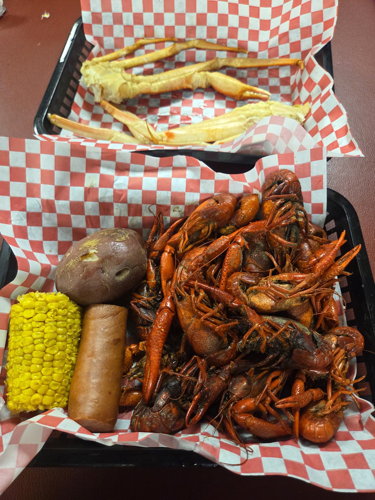 The fried green tomatoes were yummy. The gumbo & ĂtouffĂ© were both good. The crawfish has a good spicy flavor. Not much juice & very hard to peel as if they were over cooked.