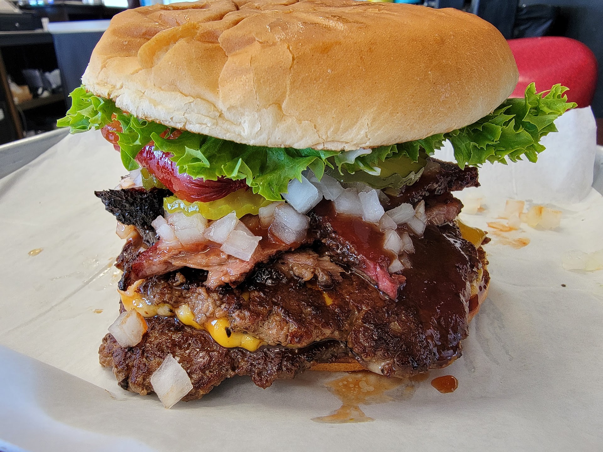 Two critics though, and that's the reason for the 4 stars. First the hamburger patties are are the thin side. I get this makes for faster service and it's easier to judge if it's done. By having such thing patties you lose a lot of moisture and the pattie becomes a mess to eat because it crumbles. So please add some girth to your patties and they will be perfect. Secondly the brisket was a tad dry. Granted we went there close to closing time and they were probably done some time well before that. The flavor was still kick butt though.