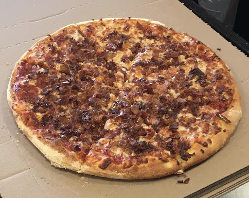 Here is a picture one of the staff members took of a recent order of mine (a 14 inch handtossed pizza with extra bacon)