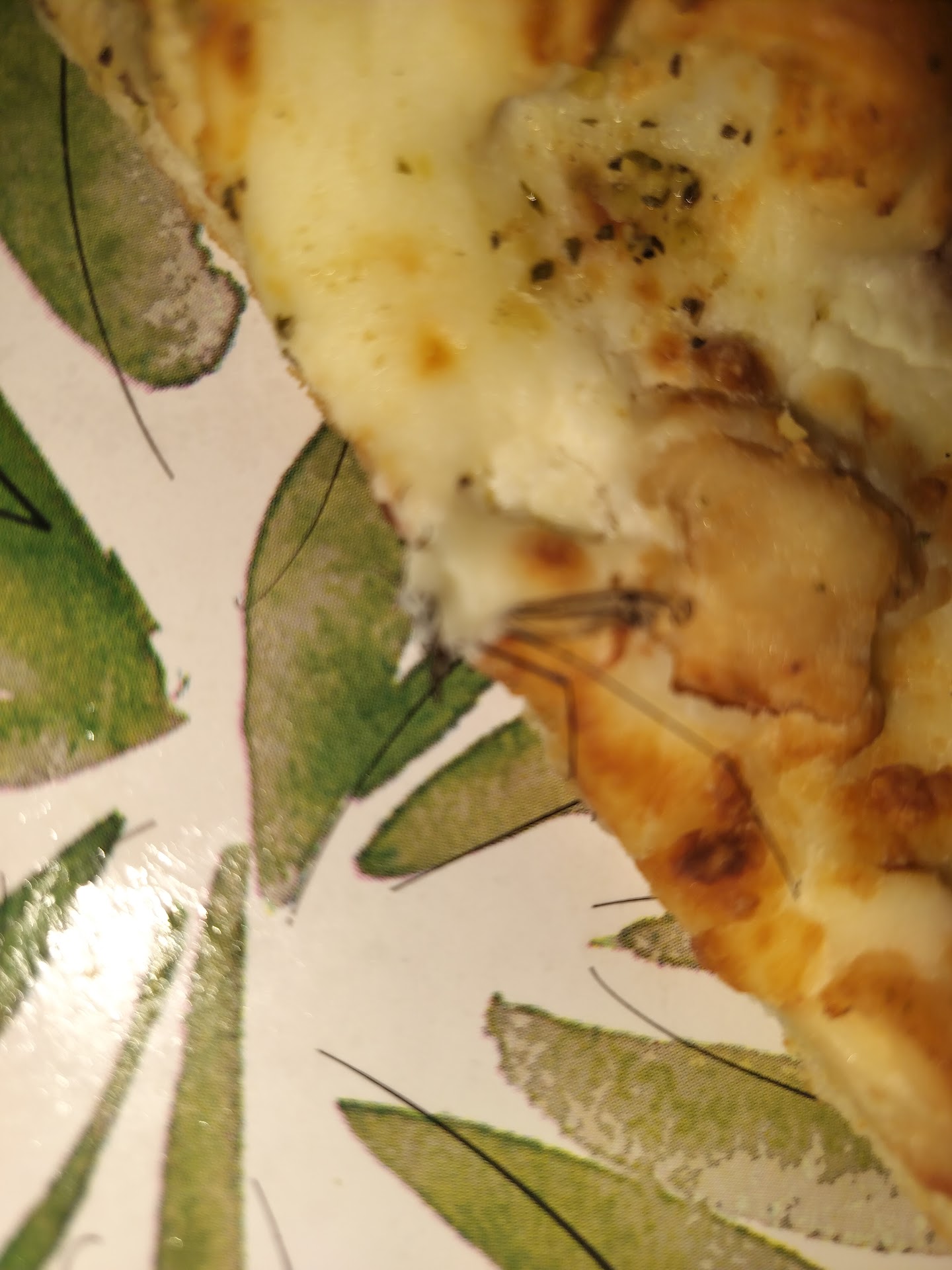 She pointed to the bug catchers on the walls like they're perfect and catch everything. Our pizza box went straight to the fridge and from there straight to the microwave. I do not have these bugs in my house. But In restaurant with doors propped open and people coming in and out all day, that sounds more likely to have some bugs flying around.