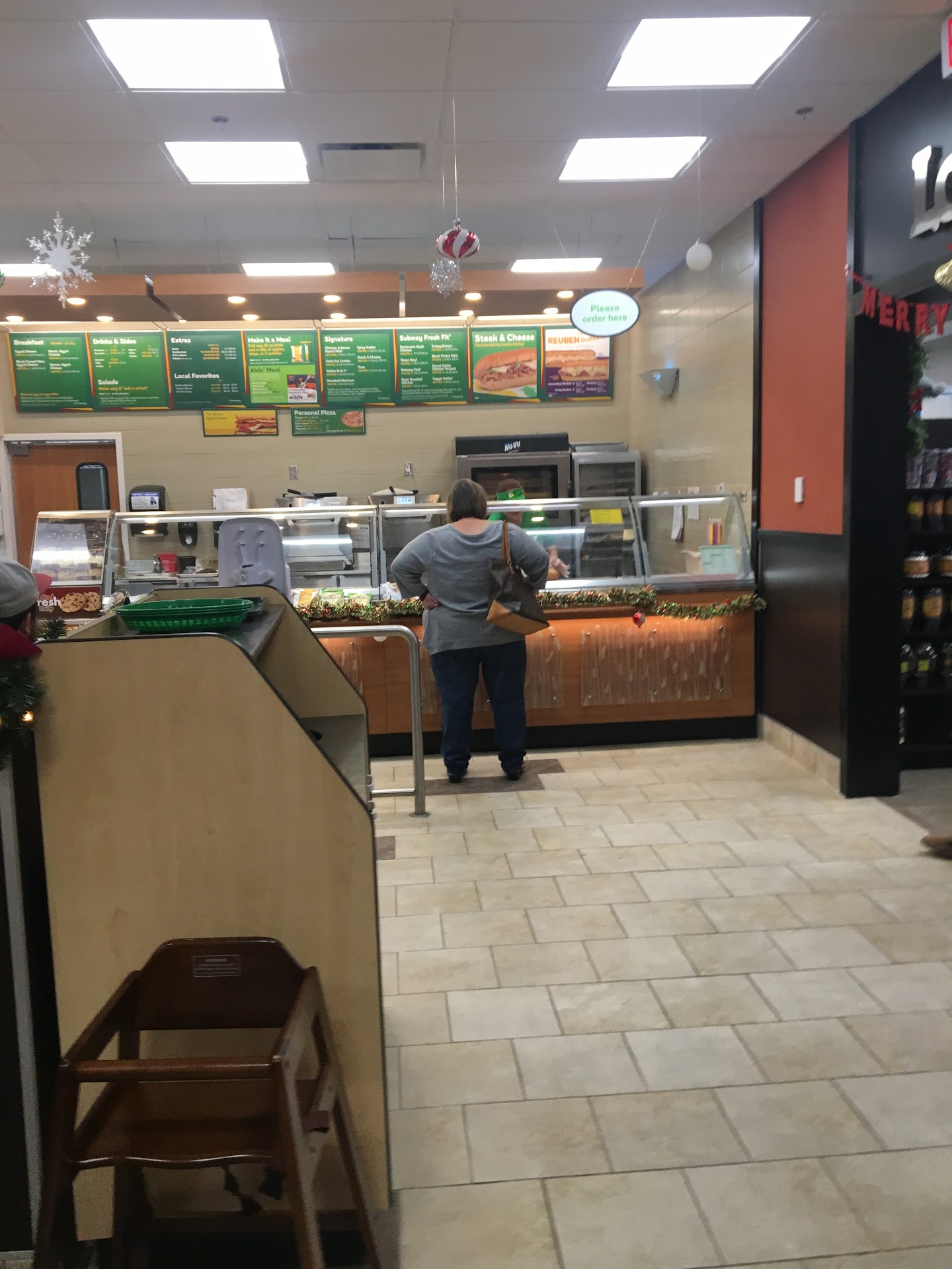 From the time I walked in until I got my food there were 7 people working and not one of them said anything to me, wasn't greeted when I came in and the new guy at subway was by himself , and having a hard time finding things. The manager was present and just stood there with her attitude just staring not offering any help, and when I asked if I could order she laughed, instead of just saying they needed receipt paper, very rude employees even ruder manager. The new guy was GREAT! Food was ok would not suggest coming here for anything other than the new guy. Terrible service, somebody should explain to them who pays them...