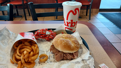 Read moreThis location was incredibly slow. The line was out the door the first time I pulled through, so I came back half an hour later. With only 3 people in front of me waiting to order, it still took 20+ minutes to get my food. There were at least 8 people also waiting for their orders and noticeably upset. There was only one guy up front for both register and food distribution and he was very slow. When a manager came up front finally after at least 15 minutes, she just started distributing the food (there was nobody in line by this point) and not even making eye contact with the customers or saying anything more than the order name. One person tried to say something and she quickly turned her back to them. It took flagging her down to tell her I hadn't gotten my cup with my order after she did the same with me. The lobby was also a complete mess with no tables wiped down and the condiments station full of sauce droppings, wrappers and dropped fries and other bits of fallen food. When I finally sat down to eat, my brisket sandwich was very sloppily and poorly made and the meat was tough to chew. I have never had this experience at any other Arby's before. The rest have all been very fast, very polite, and the sandwiches made to satisfaction. I will never return to this restaurant and overheard other customers...